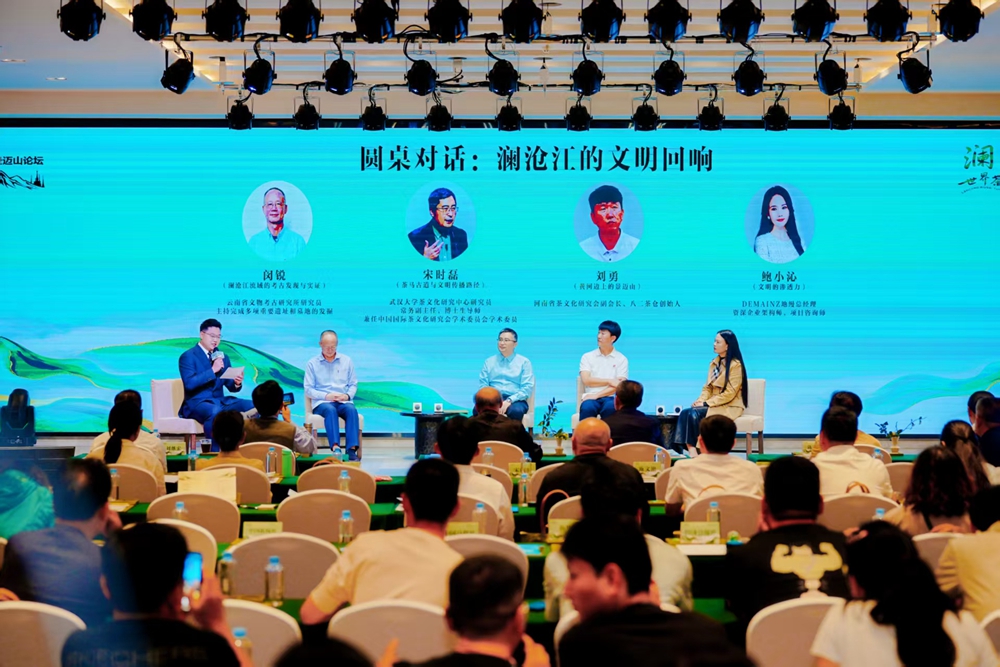 圆桌对话环节,话题聚焦“澜沧江的文明回响”,与会嘉宾围绕“澜沧江流域的考古发现与实证”“茶马古道与文明传播路径”“黄河边上的景迈山”“文明的渗透力”等话题展开深入交流。云南省文物考古研究所研究员闵锐的发言,让在场嘉宾更为直观地感受澜沧江茶文明从起源之初就蕴含的“多元共生”特质,更好地理解“中华民族共同体”为边疆地区的历史演进提供鲜活的考古样本;武汉大学茶文化研究中心研究员宋时磊则从茶马古道研究的角度出发,探讨茶及茶文化传播对世界历史进程的影响与贡献;河南省茶文化研究会副会长、八二茶仓创始人刘勇以自身深耕茶领域的经历与感悟为切入点,分享对景迈山古茶林、茶文明的热爱与敬畏;DEMAINA地缦总经理、资深企业架构师、项目咨询师鲍小沁结合时装时尚领域的实践案例,探讨茶文明与民族美学的共生共融,美美与共。